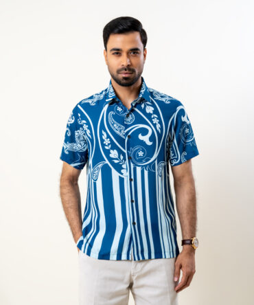 Richman Men’s Half Sleeve Navy Printed Hawai Shirt