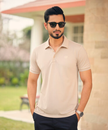 Richman Men’s Beige Color Solid Polo Shirt