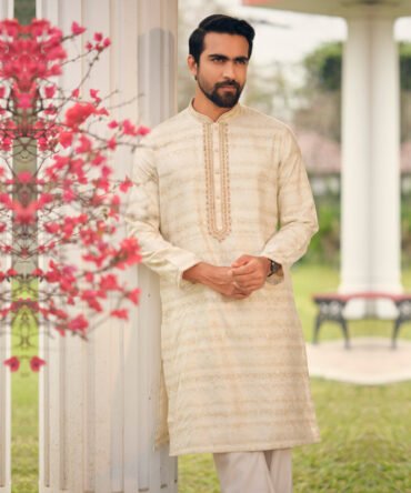 LUBNAN Men’s Off-White Color Regular Fit Premium Panjabi