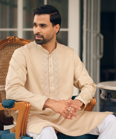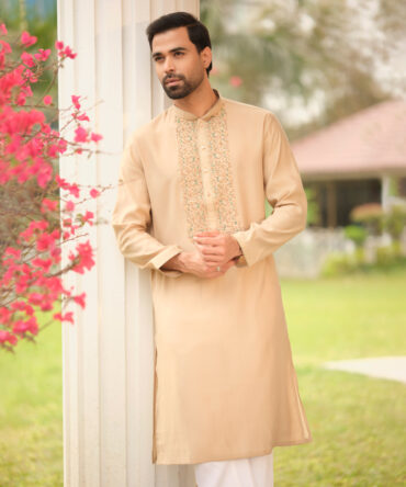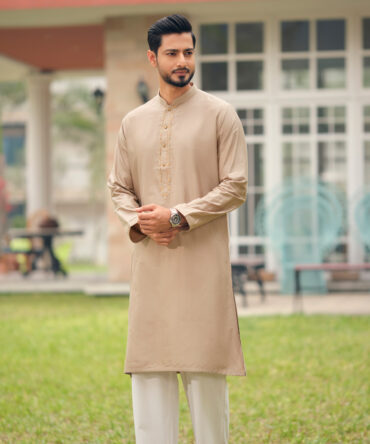 LUBNAN Men’s Biscuit Color Regular Fit Premium Panjabi