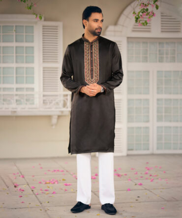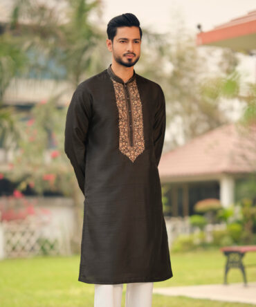 LUBNAN Men’s Black Color Regular Fit Premium Panjabi