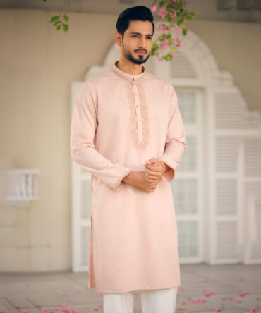 LUBNAN Men’s Peach Color Regular Fit Premium Panjabi