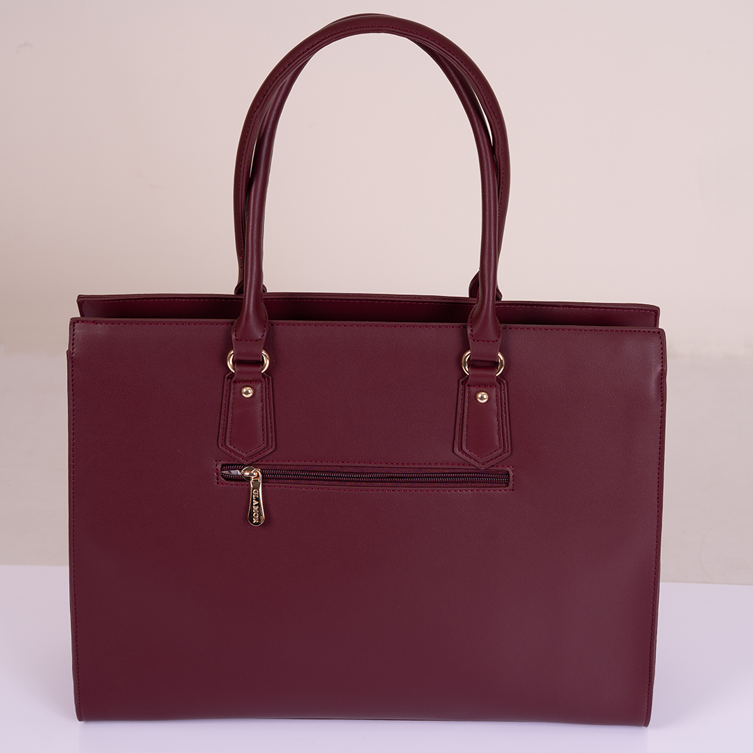 Crafted from premium artificial leather, the bag offers a smooth, refined finish that looks luxurious while being strong and easy to maintain. The rich maroon color adds a touch of bold elegance, making it a perfect accessory to complement both formal office wear and smart-casual outfits.