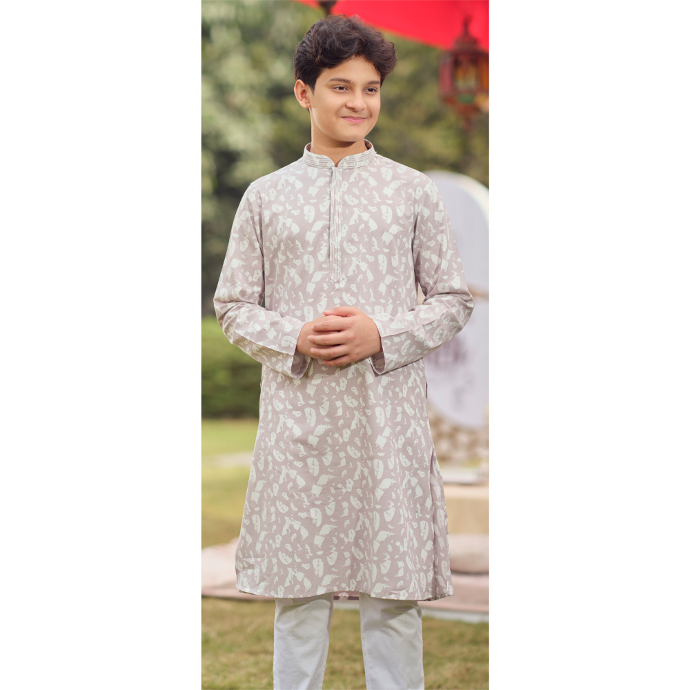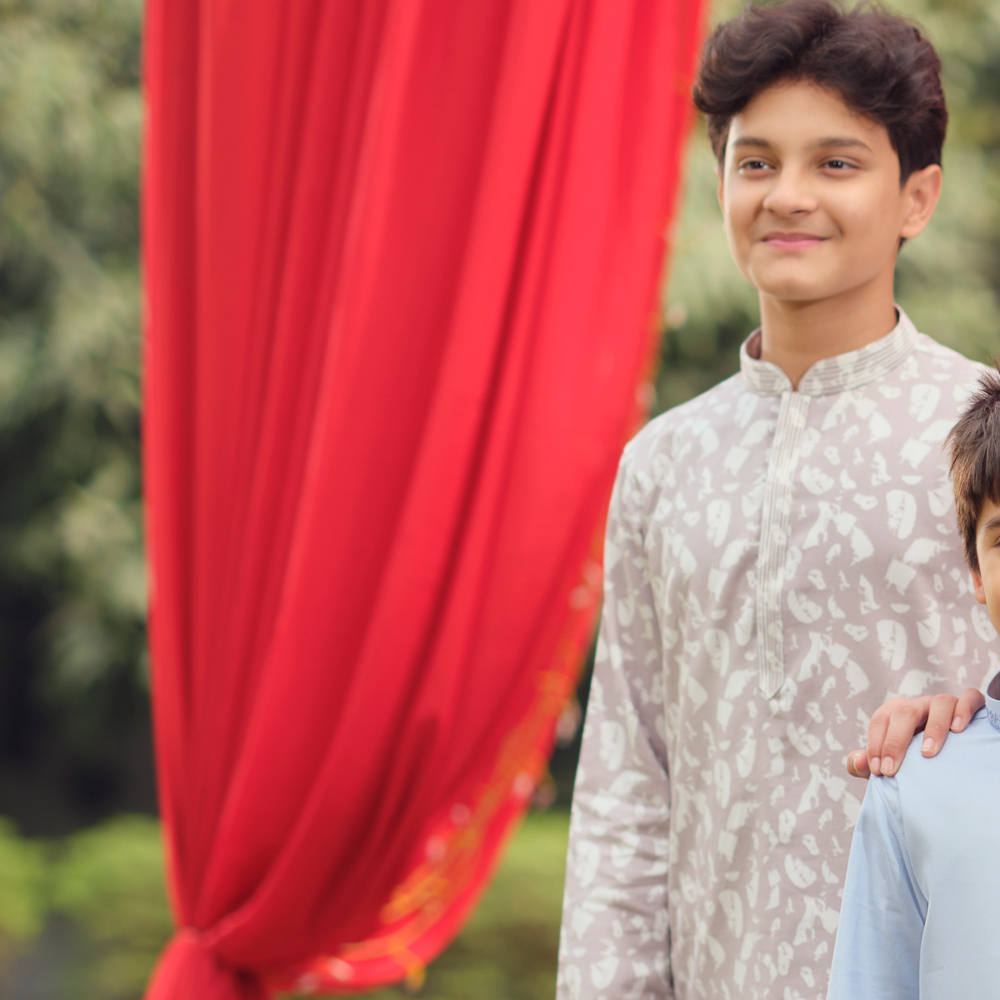 The subtle sand color adds a refined and sophisticated touch, making it a versatile choice for religious events, family gatherings, cultural programs, and festive celebrations. Designed with a classic silhouette, this Panjabi blends traditional charm with modern comfort, ensuring your boy looks stylish while feeling at ease.