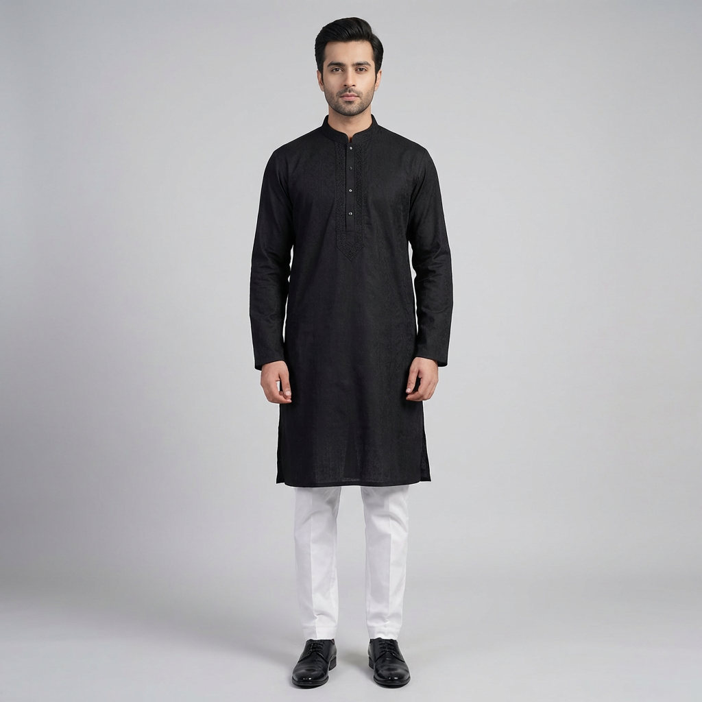 The LUBNAN Men’s Black Color Regular Fit Premium Panjabi is a perfect blend of timeless tradition and everyday comfort. Made from high-quality fabric, it ensures breathability and a soft touch, keeping you comfortable throughout the day. The elegant Black shade adds a calm yet stylish appeal, making it suitable for cultural events, festive occasions, religious gatherings, or even casual outings. Designed with a regular fit, this Panjabi provides a relaxed and effortless look while maintaining a graceful silhouette. Its classic design highlights simplicity, enhanced by fine stitching and durable craftsmanship that reflect LUBNAN’s signature attention to detail. Versatile and easy to style, it pairs seamlessly with pajama, churidar, or trousers, allowing you to adapt your look for different occasions. Whether worn during special celebrations or as everyday traditional wear, the LUBNAN Black Color regular fit Premium panjabi stands out as a wardrobe essential for men who value tradition, comfort, and elegance.