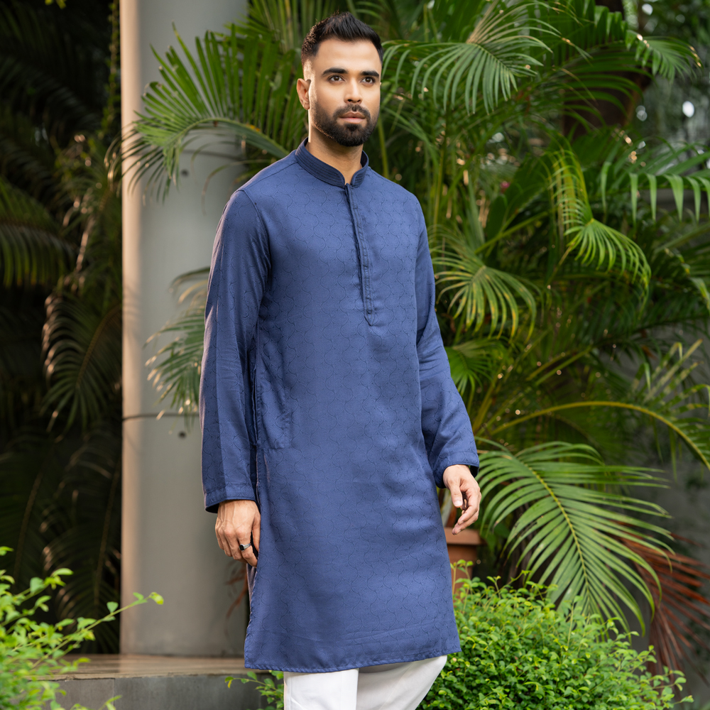 The LUBNAN Men’s Blue Color Regular Fit Classic Panjabi is a perfect blend of timeless tradition and everyday comfort. Made from high-quality fabric, it ensures breathability and a soft touch, keeping you comfortable throughout the day. The elegant blue shade adds a calm yet stylish appeal, making it suitable for cultural events, festive occasions, religious gatherings, or even casual outings. Designed with a regular fit, this panjabi provides a relaxed and effortless look while maintaining a graceful silhouette. Its classic design highlights simplicity, enhanced by fine stitching and durable craftsmanship that reflect LUBNAN’s signature attention to detail. Versatile and easy to style, it pairs seamlessly with pajama, churidar, or trousers, allowing you to adapt your look for different occasions. Whether worn during special celebrations or as everyday traditional wear, the LUBNAN blue regular fit classic panjabi stands out as a wardrobe essential for men who value tradition, comfort, and elegance.