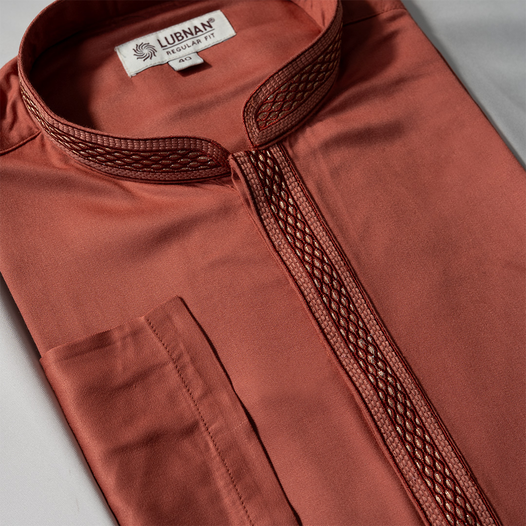 The LUBNAN Men’s Brick Color Regular Fit Premium Panjabi is a perfect blend of timeless tradition and everyday comfort. Made from high-quality fabric, it ensures breathability and a soft touch, keeping you comfortable throughout the day. The elegant Brick shade adds a calm yet stylish appeal, making it suitable for cultural events, festive occasions, religious gatherings, or even casual outings. Designed with a regular fit, this Panjabi provides a relaxed and effortless look while maintaining a graceful silhouette. Its classic design highlights simplicity, enhanced by fine stitching and durable craftsmanship that reflect LUBNAN’s signature attention to detail. Versatile and easy to style, it pairs seamlessly with pajama, churidar, or trousers, allowing you to adapt your look for different occasions. Whether worn during special celebrations or as everyday traditional wear, the LUBNAN Brick Color regular fit Premium panjabi stands out as a wardrobe essential for men who value tradition, comfort, and elegance.