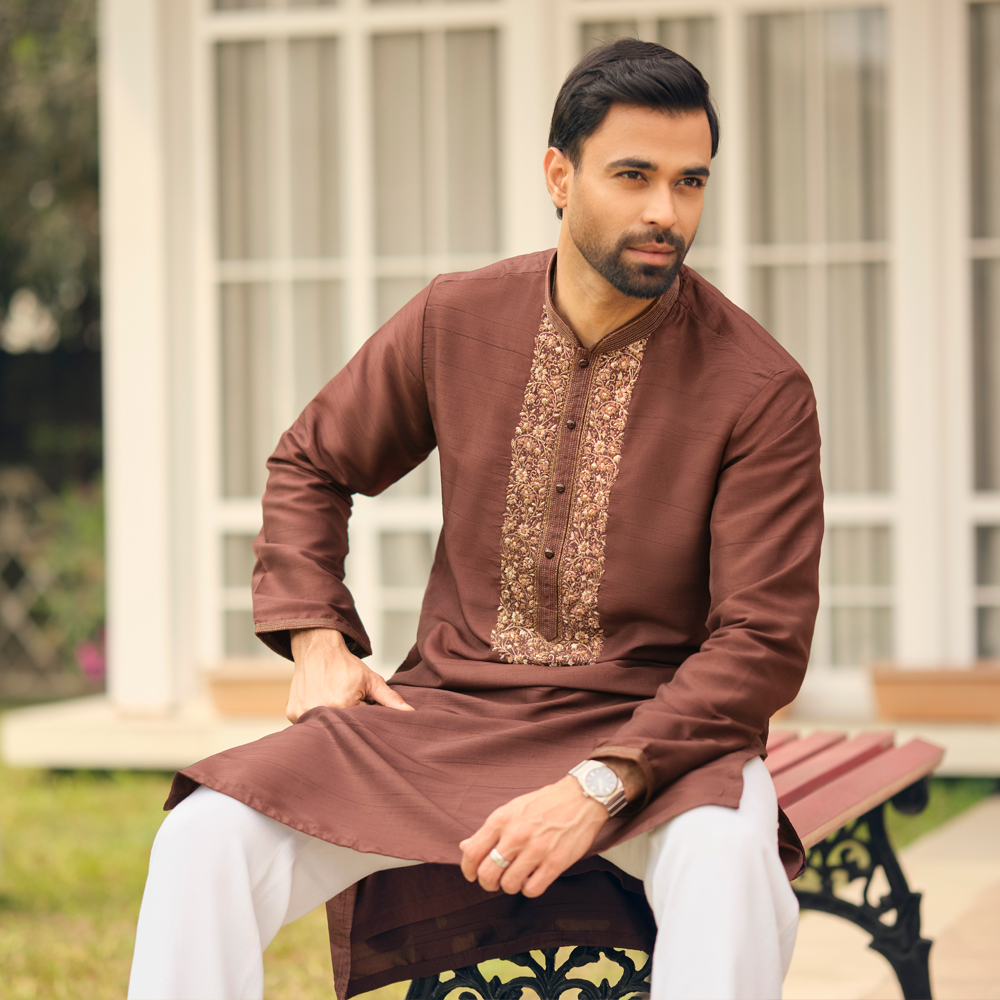 The LUBNAN Men’s Chocolate Color Regular Fit Premium Panjabi is a perfect blend of timeless tradition and everyday comfort. Made from high-quality fabric, it ensures breathability and a soft touch, keeping you comfortable throughout the day. The elegant Chocolate shade adds a calm yet stylish appeal, making it suitable for cultural events, festive occasions, religious gatherings, or even casual outings. Designed with a regular fit, this Panjabi provides a relaxed and effortless look while maintaining a graceful silhouette. Its classic design highlights simplicity, enhanced by fine stitching and durable craftsmanship that reflect LUBNAN’s signature attention to detail. Versatile and easy to style, it pairs seamlessly with pajama, churidar, or trousers, allowing you to adapt your look for different occasions. Whether worn during special celebrations or as everyday traditional wear, the LUBNAN Chocolate Color regular fit Premium panjabi stands out as a wardrobe essential for men who value tradition, comfort, and elegance.