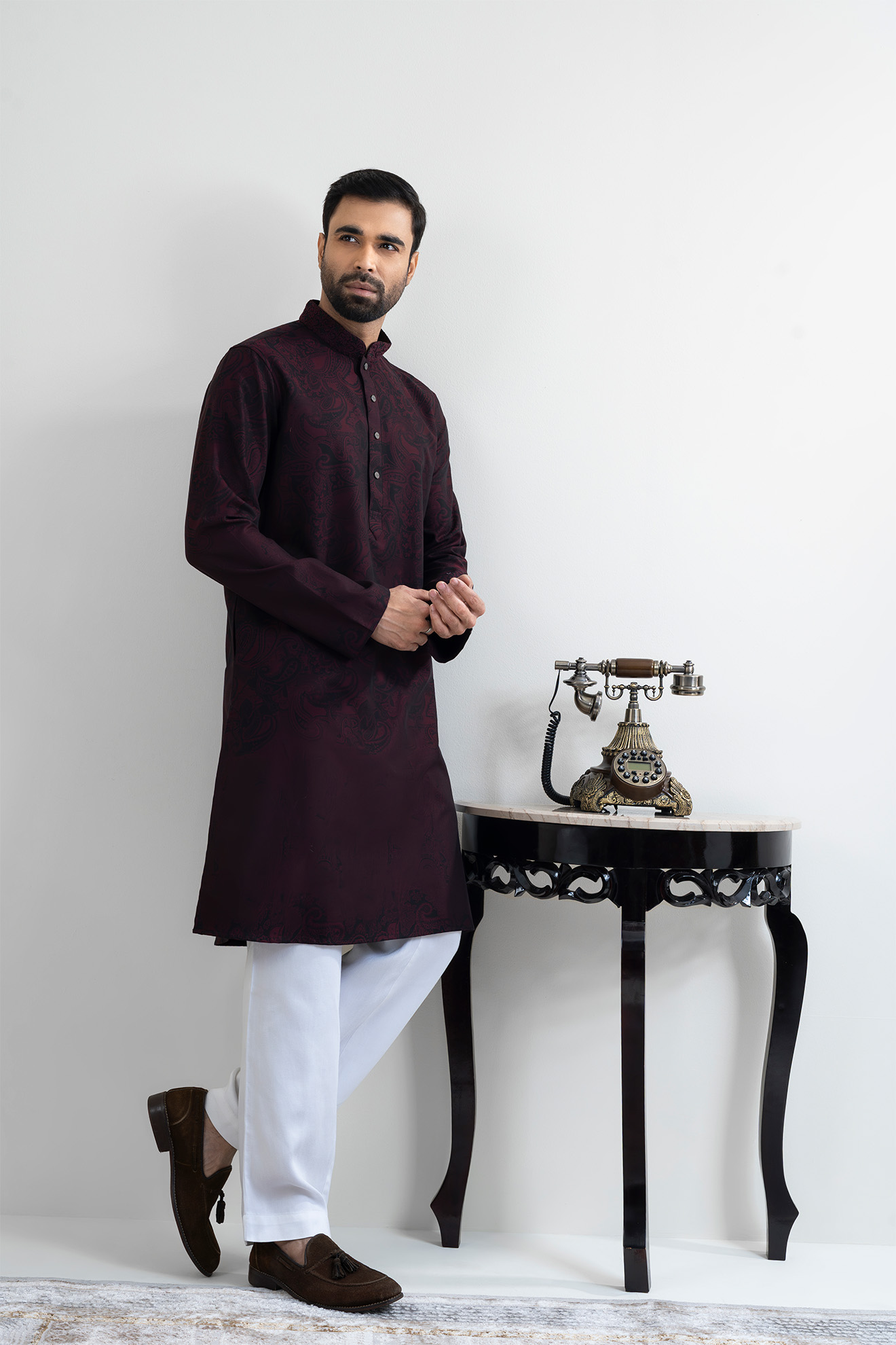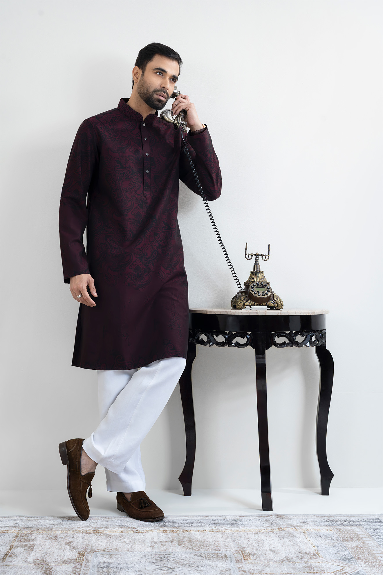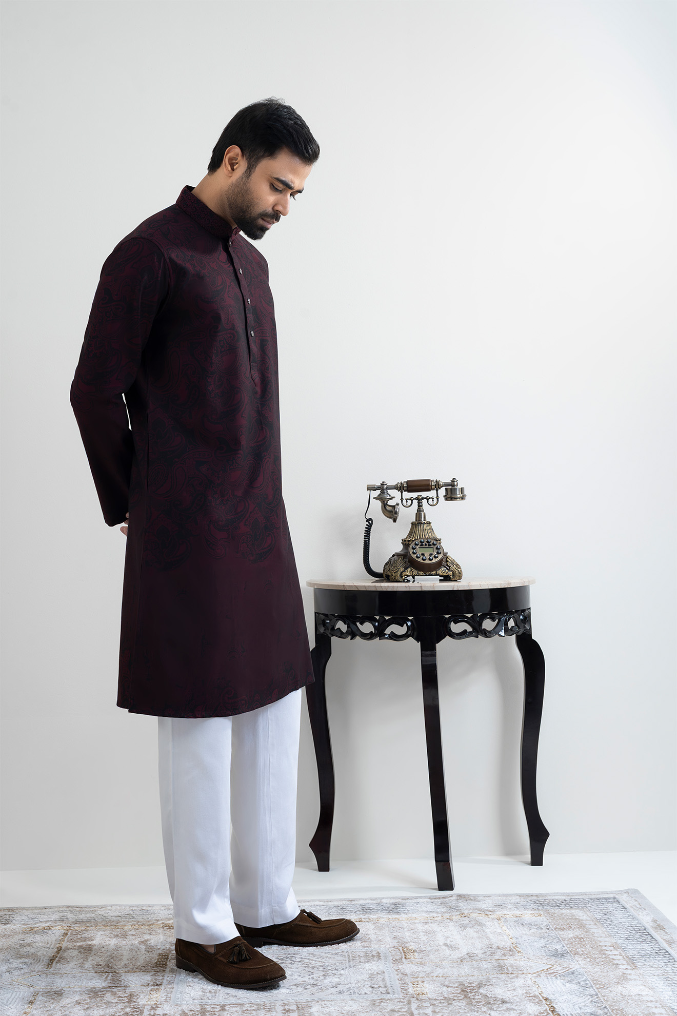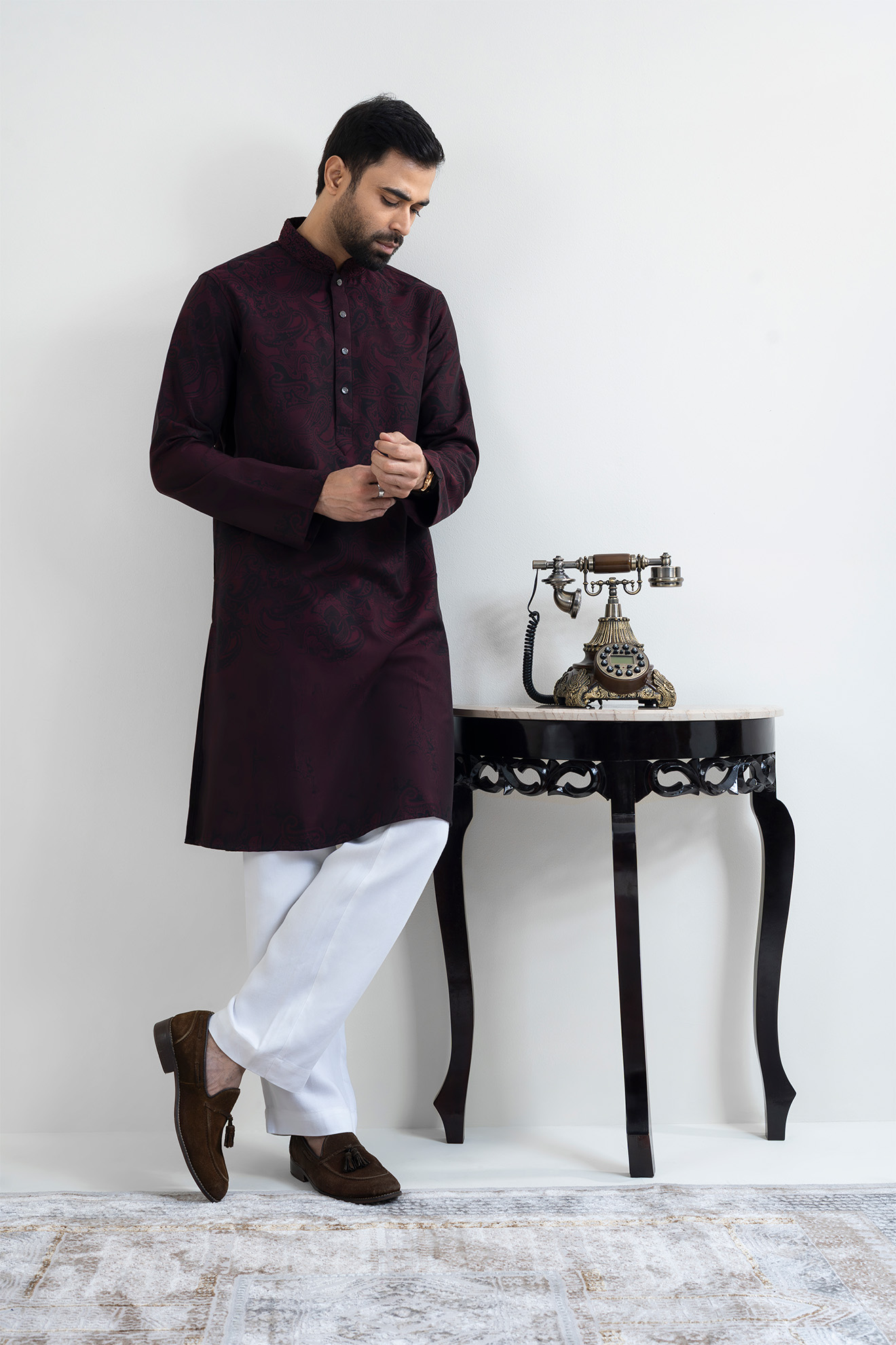 The LUBNAN Men’s Dark Maroon Color Slim Fit Premium Panjabi is a perfect blend of timeless tradition and everyday comfort. Made from high-quality fabric, it ensures breathability and a soft touch, keeping you comfortable throughout the day. The elegant Maroon shade adds a calm yet stylish appeal, making it suitable for cultural events, festive occasions, religious gatherings, or even casual outings. Designed with a regular fit, this Panjabi provides a relaxed and effortless look while maintaining a graceful silhouette. Its classic design highlights simplicity, enhanced by fine stitching and durable craftsmanship that reflect LUBNAN’s signature attention to detail. Versatile and easy to style, it pairs seamlessly with pajama, churidar, or trousers, allowing you to adapt your look for different occasions. Whether worn during special celebrations or as everyday traditional wear, the LUBNAN Maroon Slim fit Premium panjabi stands out as a wardrobe essential for men who value tradition, comfort, and elegance.