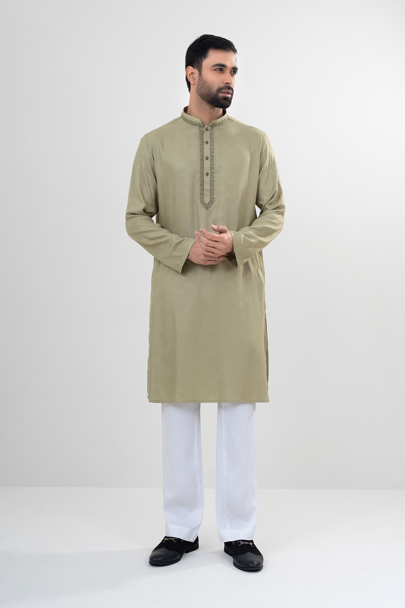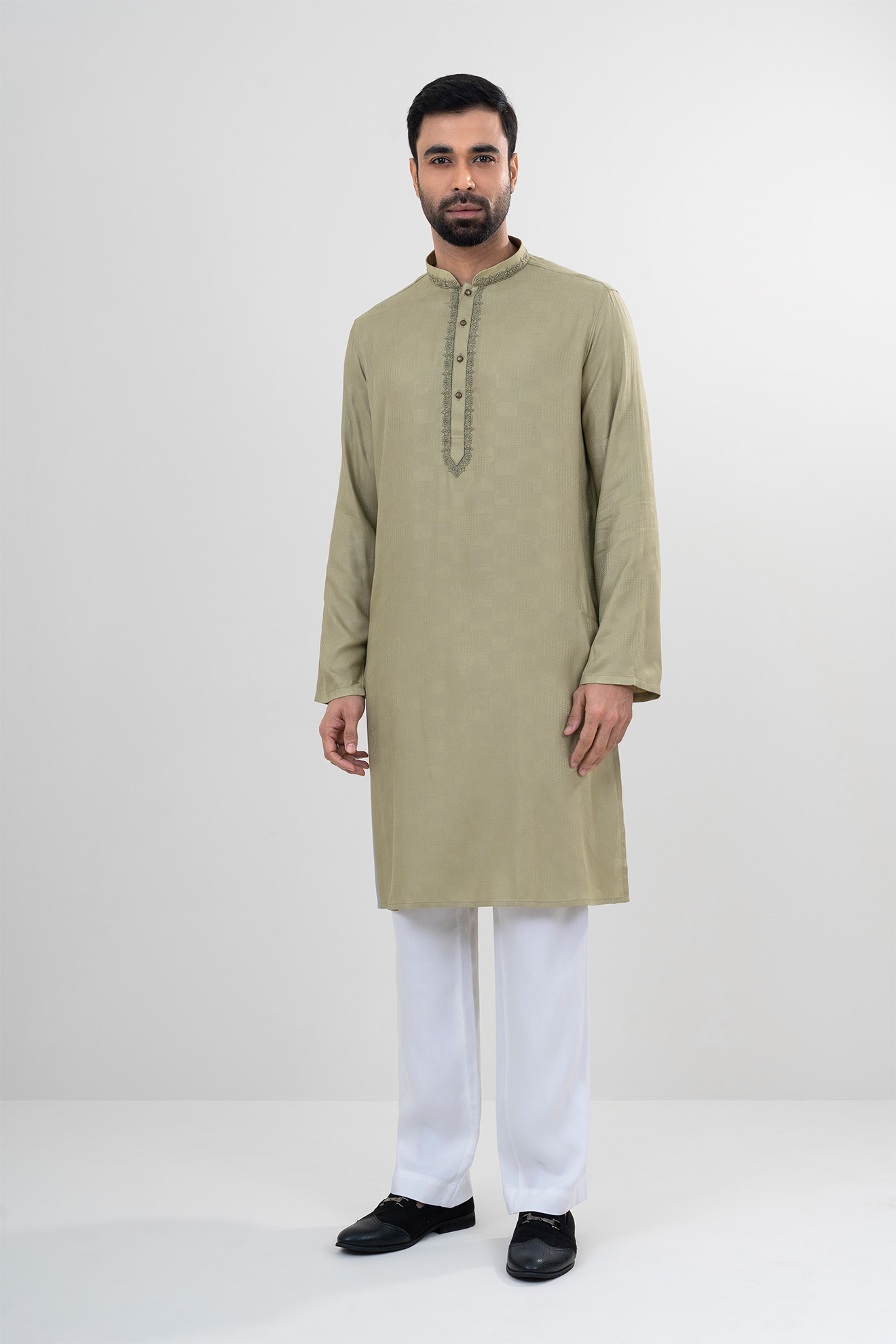 The LUBNAN Men’s Pastel Olive Color Regular Fit Premium Panjabi is a perfect blend of timeless tradition and everyday comfort. Made from high-quality fabric, it ensures breathability and a soft touch, keeping you comfortable throughout the day. The elegant Olive shade adds a calm yet stylish appeal, making it suitable for cultural events, festive occasions, religious gatherings, or even casual outings. Designed with a regular fit, this Panjabi provides a relaxed and effortless look while maintaining a graceful silhouette. Its classic design highlights simplicity, enhanced by fine stitching and durable craftsmanship that reflect LUBNAN’s signature attention to detail. Versatile and easy to style, it pairs seamlessly with pajama, churidar, or trousers, allowing you to adapt your look for different occasions. Whether worn during special celebrations or as everyday traditional wear, the LUBNAN Pastel Olive regular fit Premium panjabi stands out as a wardrobe essential for men who value tradition, comfort, and elegance.