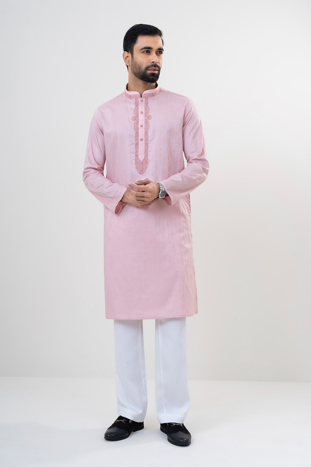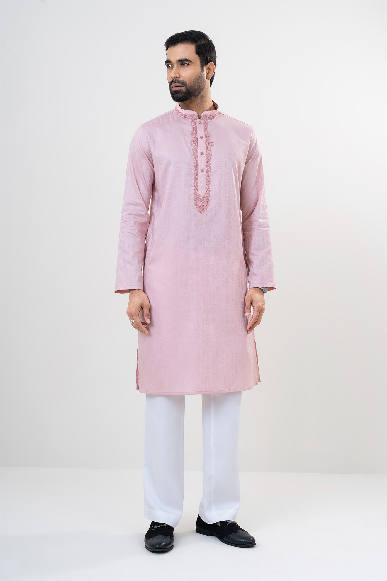 The LUBNAN Men’s Pink Color Regular Fit Premium Panjabi is a perfect blend of timeless tradition and everyday comfort. Made from high-quality fabric, it ensures breathability and a soft touch, keeping you comfortable throughout the day. The elegant Pink shade adds a calm yet stylish appeal, making it suitable for cultural events, festive occasions, religious gatherings, or even casual outings. Designed with a regular fit, this Panjabi provides a relaxed and effortless look while maintaining a graceful silhouette. Its classic design highlights simplicity, enhanced by fine stitching and durable craftsmanship that reflect LUBNAN’s signature attention to detail. Versatile and easy to style, it pairs seamlessly with pajama, churidar, or trousers, allowing you to adapt your look for different occasions. Whether worn during special celebrations or as everyday traditional wear, the LUBNAN Pink Color regular fit Premium panjabi stands out as a wardrobe essential for men who value tradition, comfort, and elegance.