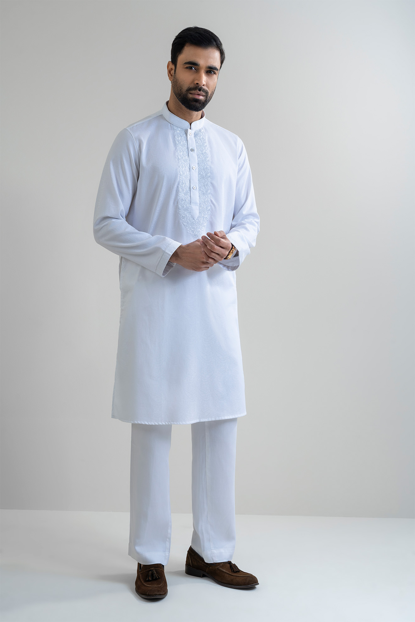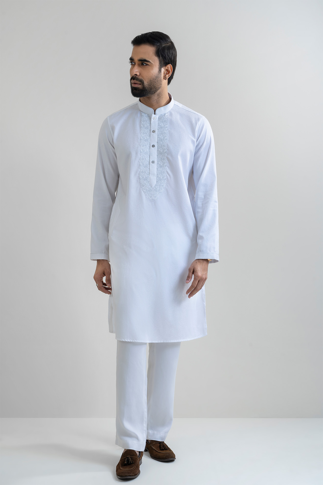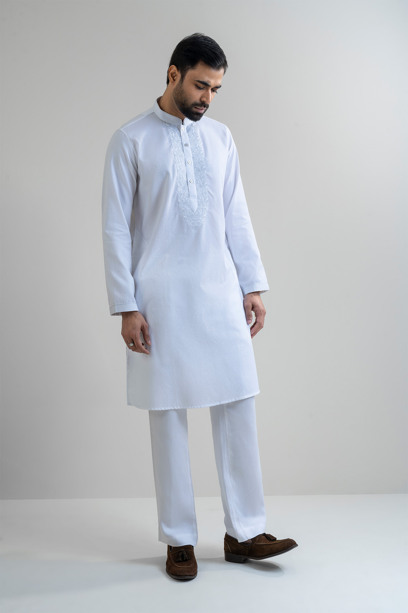 The LUBNAN Men’s White Color Regular Fit Premium Panjabi is a perfect blend of timeless tradition and everyday comfort. Made from high-quality fabric, it ensures breathability and a soft touch, keeping you comfortable throughout the day. The elegant White shade adds a calm yet stylish appeal, making it suitable for cultural events, festive occasions, religious gatherings, or even casual outings. Designed with a regular fit, this Panjabi provides a relaxed and effortless look while maintaining a graceful silhouette. Its classic design highlights simplicity, enhanced by fine stitching and durable craftsmanship that reflect LUBNAN’s signature attention to detail. Versatile and easy to style, it pairs seamlessly with pajama, churidar, or trousers, allowing you to adapt your look for different occasions. Whether worn during special celebrations or as everyday traditional wear, the LUBNAN White regular fit Premium panjabi stands out as a wardrobe essential for men who value tradition, comfort, and elegance.
