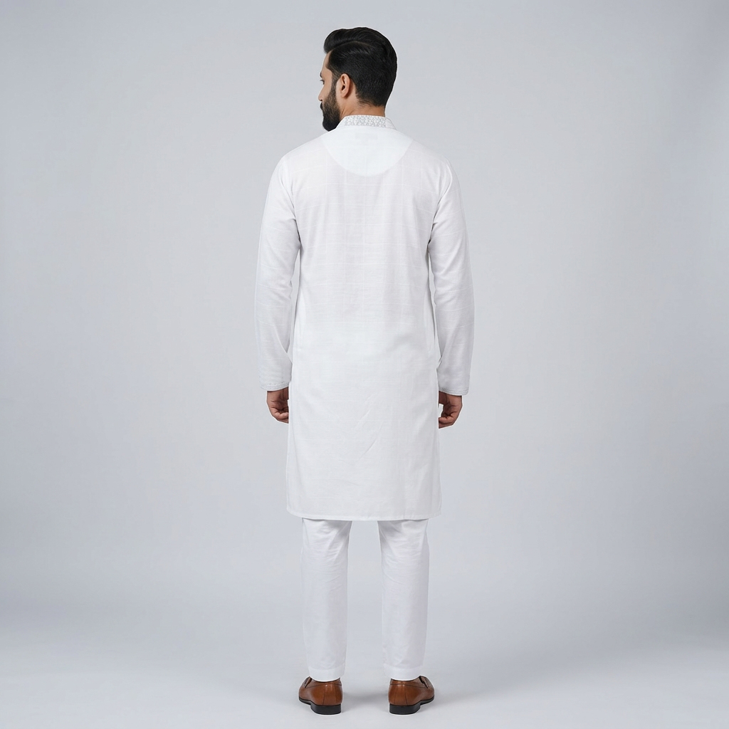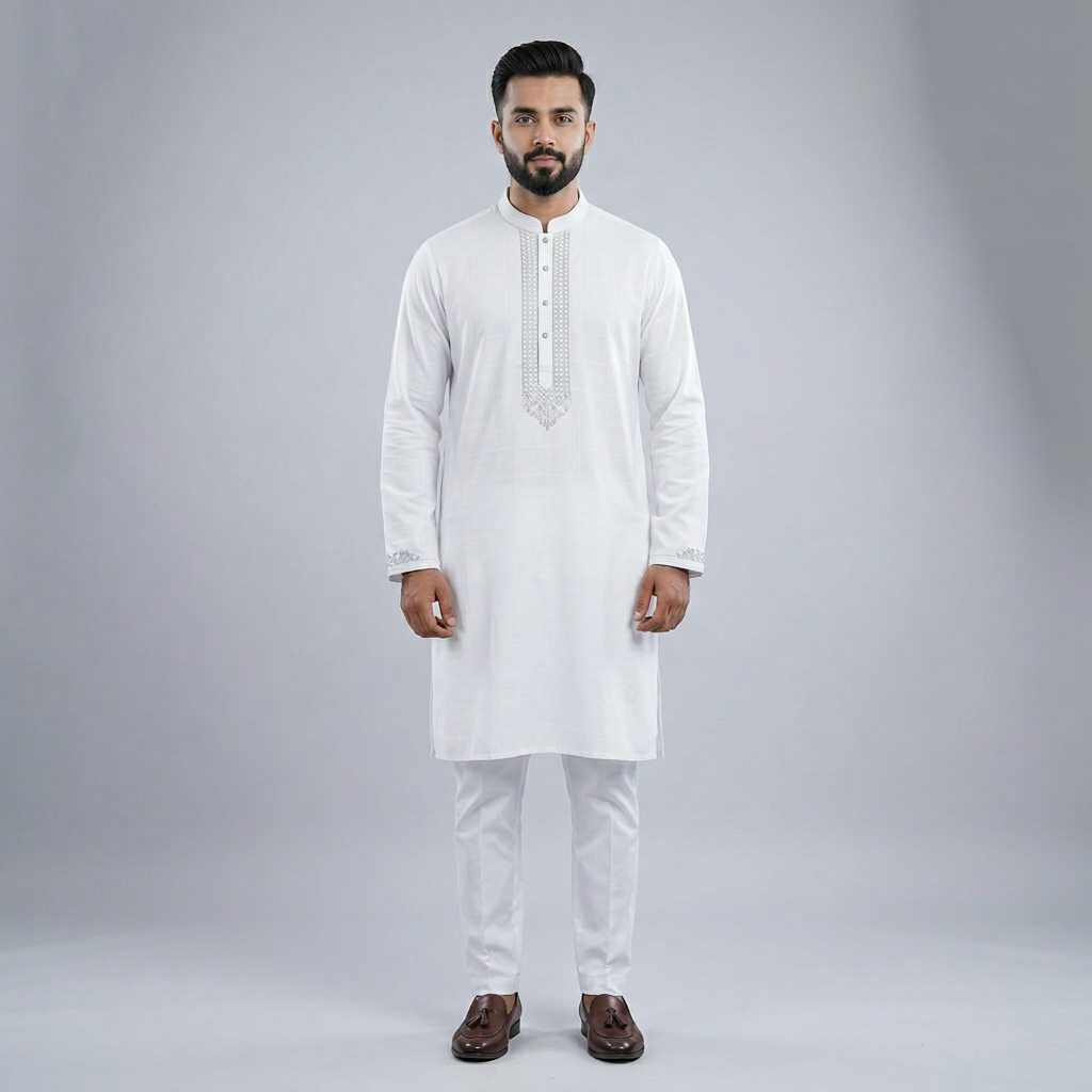 The LUBNAN Men’s White Color Regular Fit Premium Panjabi is a perfect blend of timeless tradition and everyday comfort. Made from high-quality fabric, it ensures breathability and a soft touch, keeping you comfortable throughout the day. The elegant White shade adds a calm yet stylish appeal, making it suitable for cultural events, festive occasions, religious gatherings, or even casual outings. Designed with a regular fit, this Panjabi provides a relaxed and effortless look while maintaining a graceful silhouette. Its classic design highlights simplicity, enhanced by fine stitching and durable craftsmanship that reflect LUBNAN’s signature attention to detail. Versatile and easy to style, it pairs seamlessly with pajama, churidar, or trousers, allowing you to adapt your look for different occasions. Whether worn during special celebrations or as everyday traditional wear, the LUBNAN White regular fit Premium panjabi stands out as a wardrobe essential for men who value tradition, comfort, and elegance.