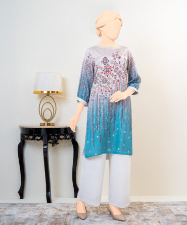 Styled in a straight, relaxed silhouette, this kameez offers comfortable wear while maintaining a graceful drape. The round neckline and three-quarter sleeves make it a versatile piece—perfect for casual outings, workwear, or understated festive styling. Pair it with contrasting trousers or leggings for a polished ethnic ensemble.