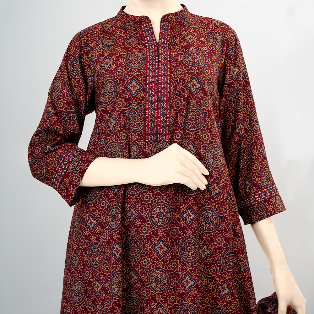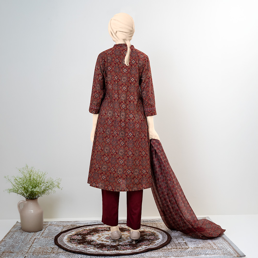 Perfect for festive celebrations, cultural events, family gatherings, and special occasions, this dark maroon printed salwar kameez blends luxury craftsmanship with classic style for a refined statement look.