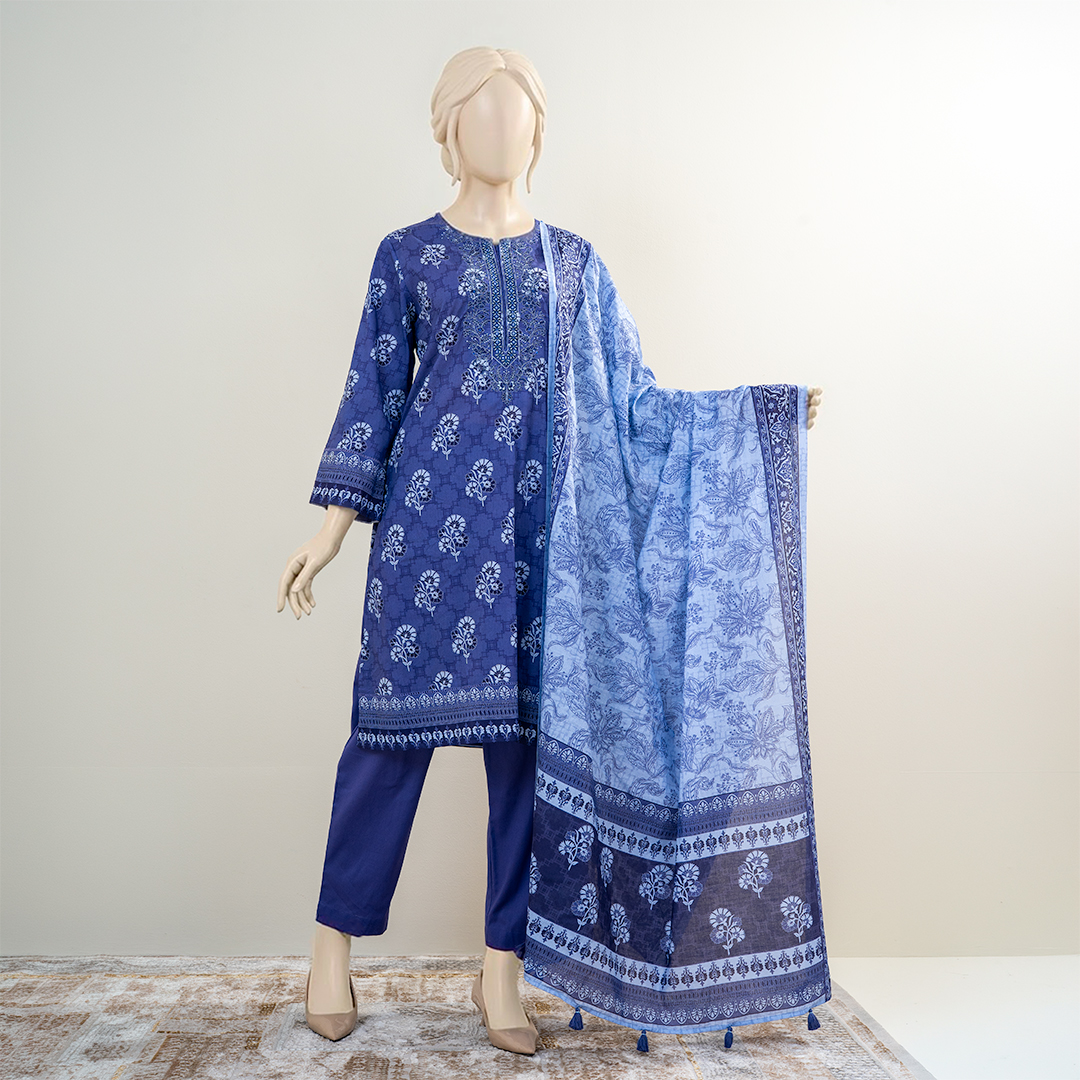 Elevate your festive wardrobe with this luxury 3-piece women’s salwar kameez set crafted from premium cotton fabric by Muslin. Designed in a rich Blue color, the ensemble reflects timeless elegance with a festive appeal.
