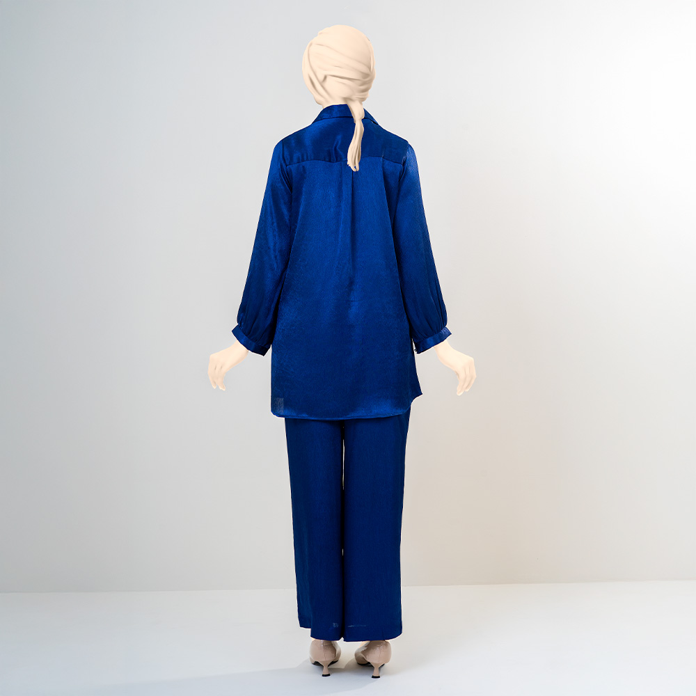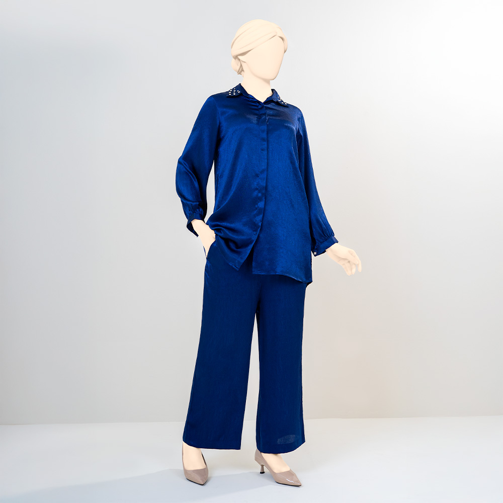 The deep blue color exudes confidence and sophistication, giving the outfit a refined and timeless appeal. Thoughtfully designed to balance comfort with contemporary style, this co-ord set delivers a polished look without compromising on ease.