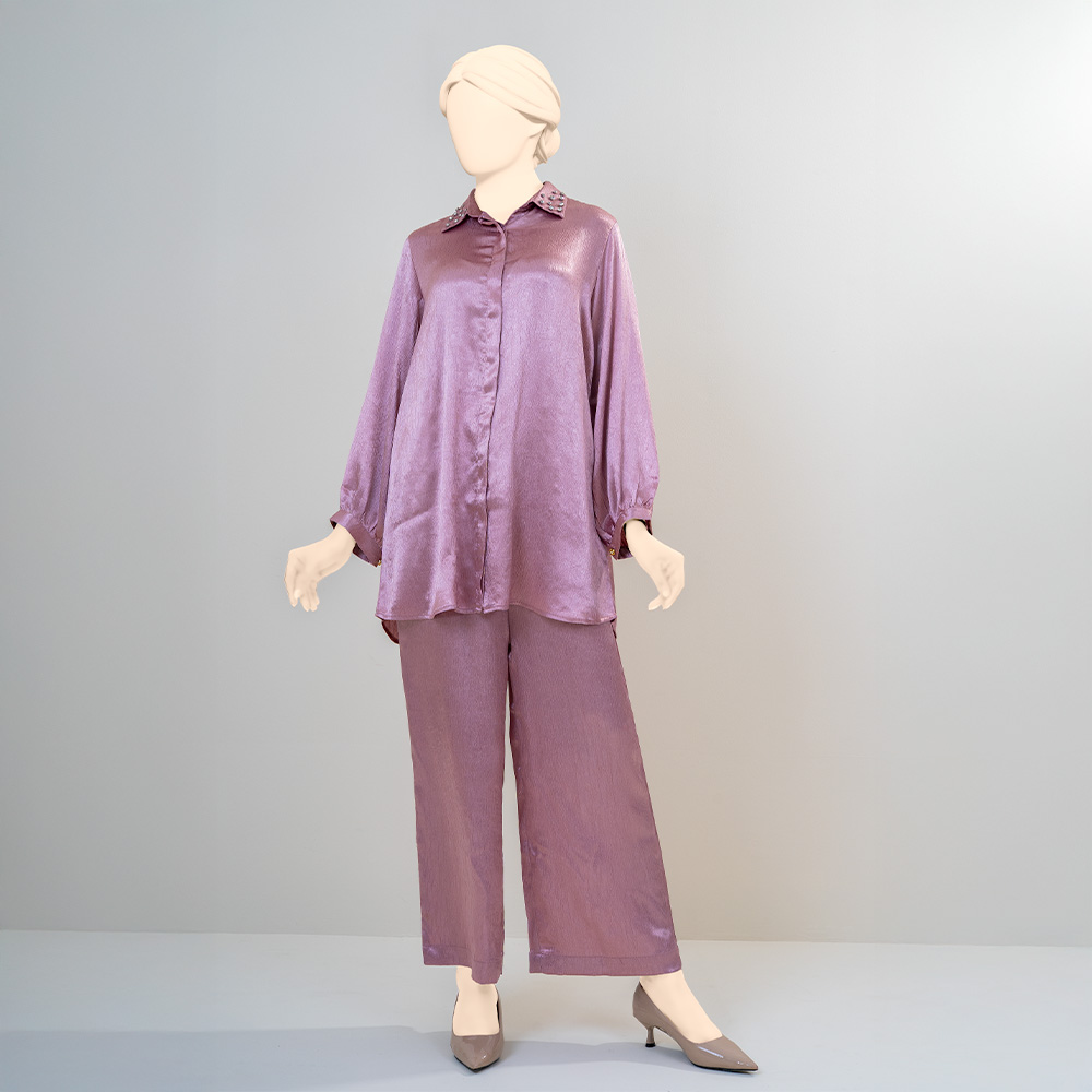 The elegant lite pink hue adds a touch of subtle femininity and charm, making it easy to accessorize for brunches, festive gatherings, or evening get-togethers. Designed to provide a relaxed yet refined look, this co-ord set blends modern sophistication with effortless grace.