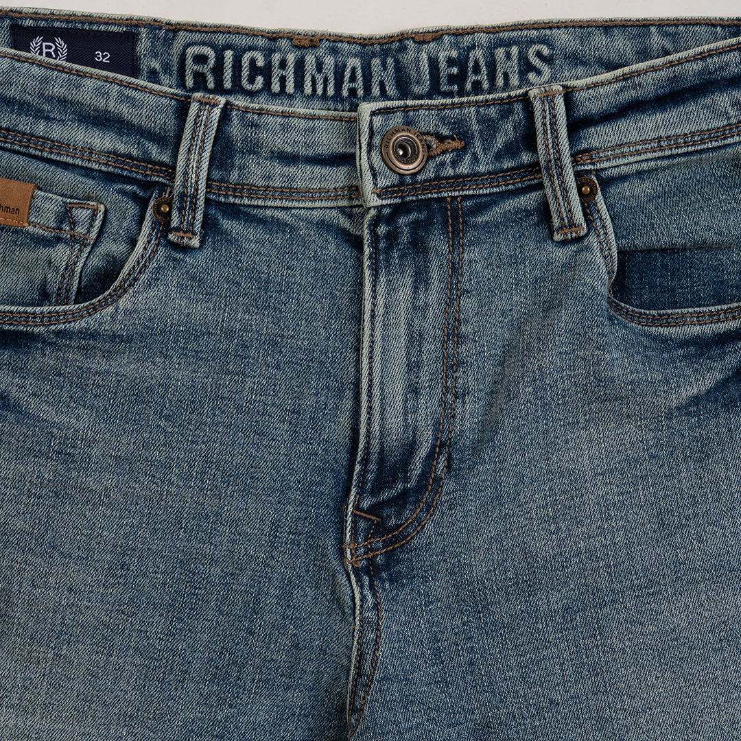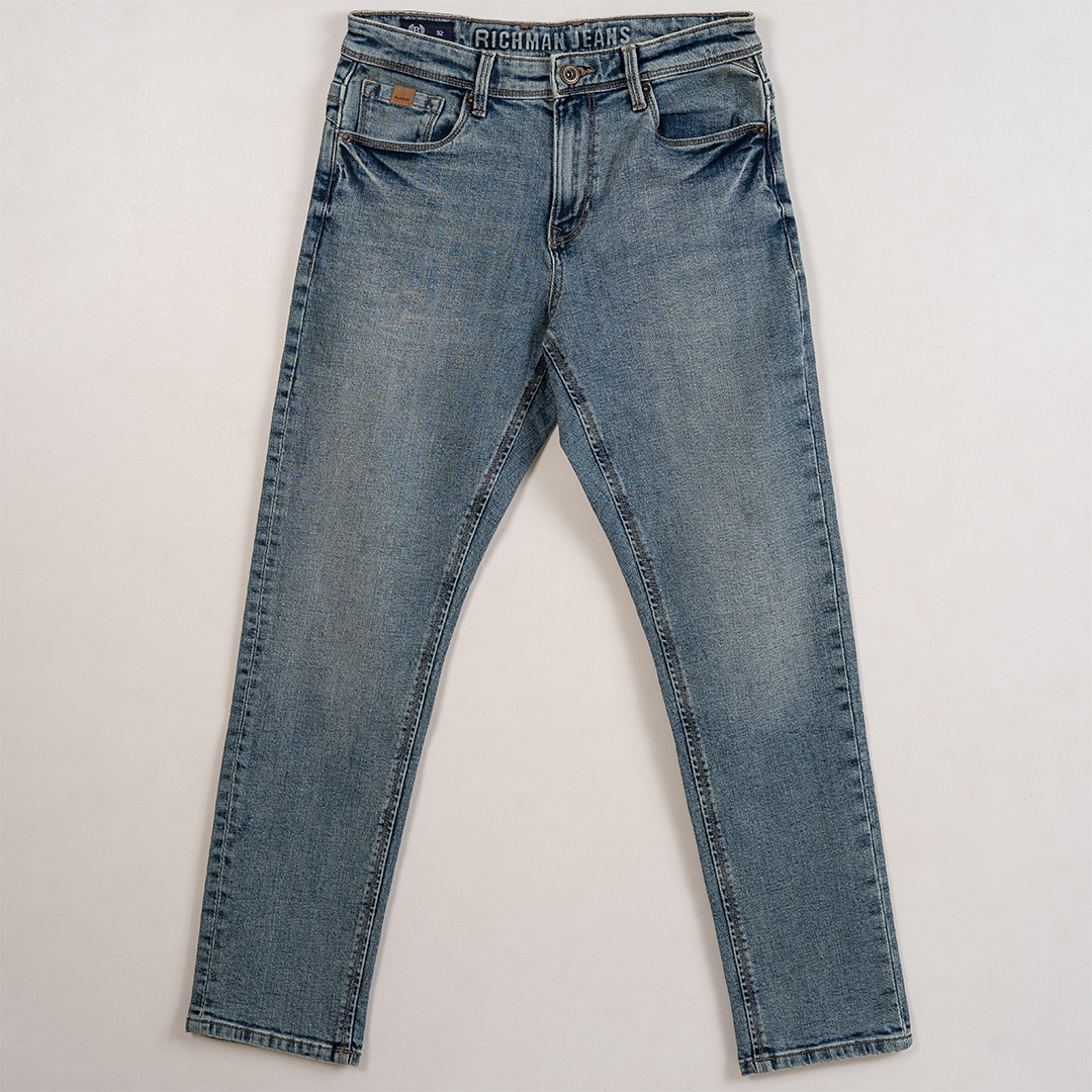 Richman Men’s Blue-Green Denim Pant – Timeless Style, Modern Comfort
