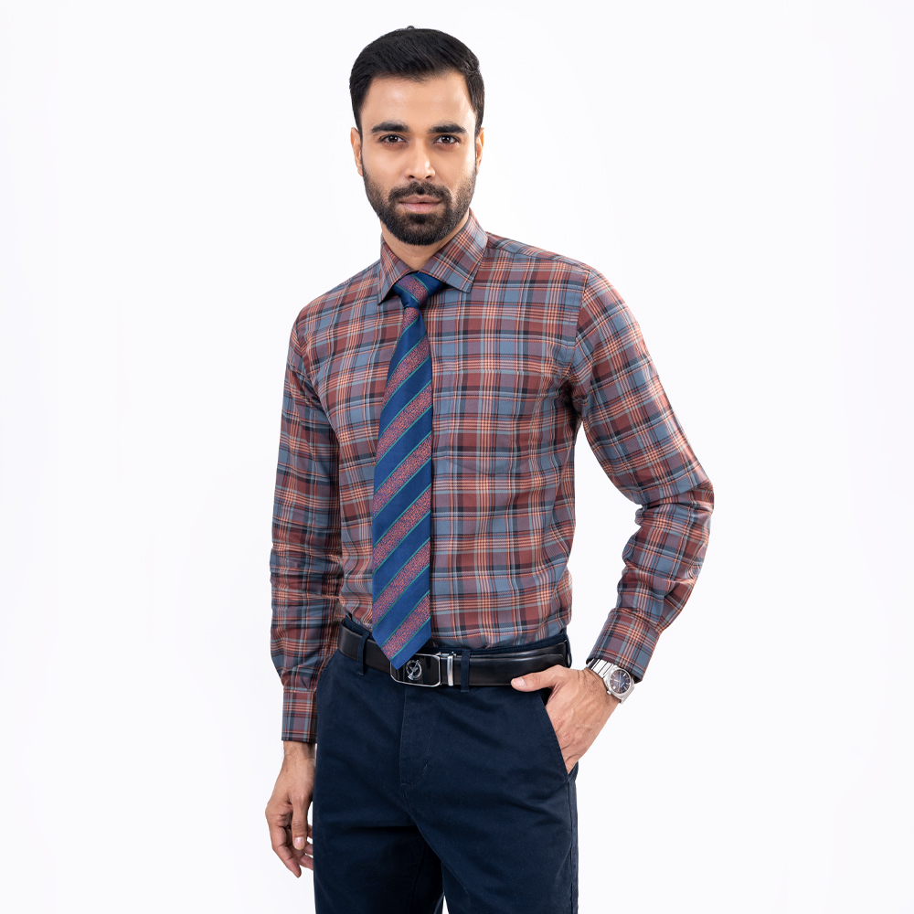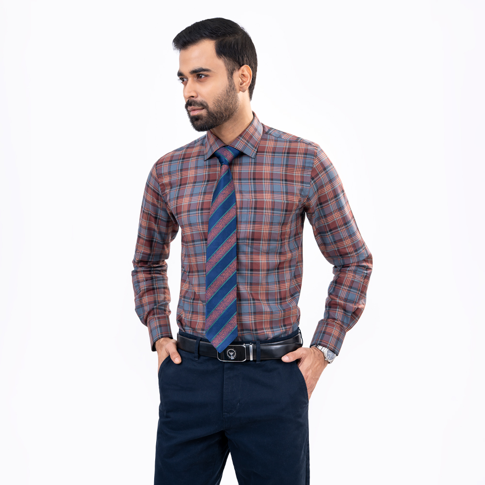 The slim fit cut creates a clean, tailored silhouette, while the dark maroon check pattern adds a rich and refined touch to your look. Featuring long sleeves (LS) and a structured collar, this shirt transitions effortlessly from office wear to smart-casual occasions.